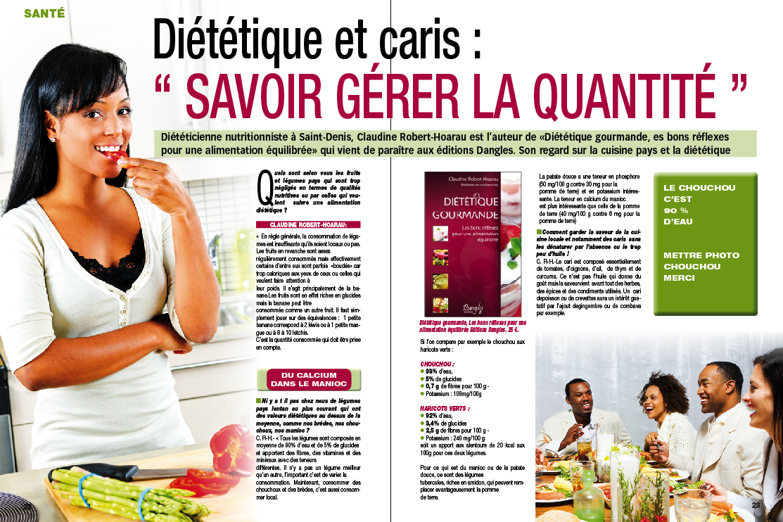- Retrouvez le 1er jeudi de chaque mois ma rubrique “Nutrition” dans FEMME Magazine, le supplément mensuel du Journal de l’Ile de la Réunion.